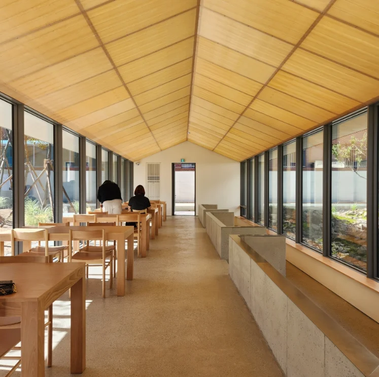 The café’s large, floor-to-ceiling windows offer panoramic views of the surrounding natural landscape, including nearby mountains and the sky. This design choice allows patrons to enjoy the beauty of the changing seasons from within the comfort of the café. Additionally, a small rooftop area provides an open-air space for guests to enjoy the outdoors and soak up the sun. The café’s commitment to creating a serene and nature-connected atmosphere, coupled with its pet-friendly policies, makes it a distinctive addition to Daegu’s café scene.